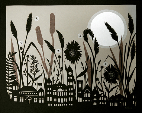 Available in my Etsy shop. I’ll also have some new paper cuttings available this weekend at the Lawrence Art Guild Holiday Art Fair. Held on Dec. 5 from 10am – 6pm at the Lawrence Arts Center, 949 New Hampshire, Lawrence, KS.
