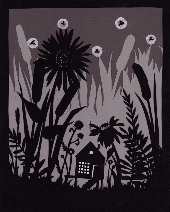 A recent commission. Cut paper and tissue paper. 8 x 10 inches.